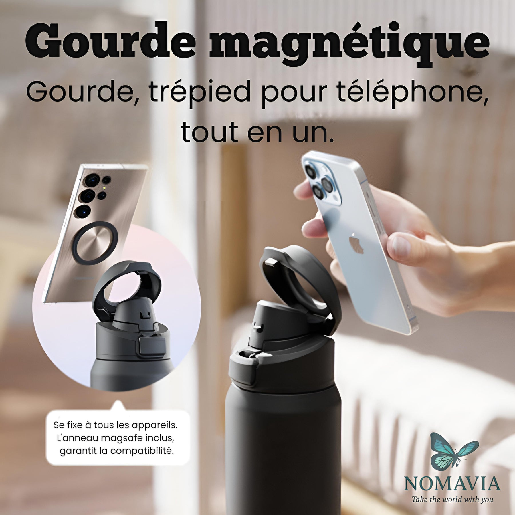 Gourde Isotherme 2-en-1, avec support magnétique pour Téléphone